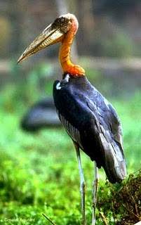 Marabú Javanés (Leptoptilos javanicus). Es una de las aves en la familia de las Cigüeñas (familia Ciconiidae). Este marabú es natural de Asia. Esta cigüeña habita en terrenos inundados, manglares y márgenes de depósitos de agua donde hay vegetación acuática flotante. Anida en colonias construye el nido sobre los arbustos de la costa. Al Marabú Javanés también se le llama Marabú Menor”.En inglés se le conoce por Lesser Adjutant Stork.