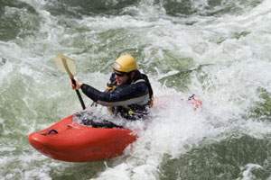 El kayak tiene el casco cerrado excepto en la abertura ovalada por donde entra el tripulante, que rema sentado con un remo de dos palas. Esta práctica en aguas bravas no es fácil, precisa seguir un curso previo.