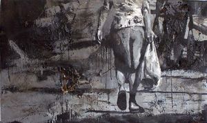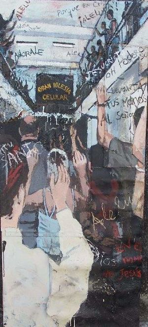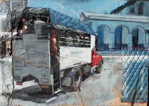 Actualmente toda esa cotidianidad, ya no es casera sino pueblerina, la vuelca en el cuadro o inserta objetos de ese mundo a modo de ensamblaje o pintura objetual que raya en lo instalativo, reproduciendo así parte de las artimañas e ingenios del pueblo para garantizar la supervivencia.