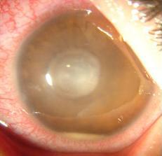 Úlcera de la córnea. Es una perforación de la córnea, generalmente debida a una infección, con bacterias, virus, hongos o amebas.