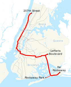 Hace cinco viajes de horas pico en la Calle 116 Beach en Rockaway Park, Queens hacia Manhattan durante las mañanas y cinco viajes de horas pico hacia la calle 116 Beach desde Manhattan durante el atardecer. Todo el tiempo, un servicio "shuttle" (servicio de trenes que van y vienen en una sola dirección) de (Rockaway Park Shuttle) conecta a Rockaway Park hacia la línea principal en la estación Broad Channel.