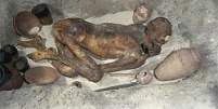 Incluso en tiempos posteriores, quienes no podían permitirse el gasto de una momificación eran enterrados de manera similar a la de este hombre, si bien según fueron avanzando los tiempos, ya colocaban el cuerpo estirado. La excavación de tumbas predinásticas nos ha aportado mucha de la información que poseemos acerca de las fases más tempranas de asentamiento en el Valle del Nilo. Este cuerpo está rodeado por varios objetos funerarios, todos ellos auténticos y provenientes de otras tumbas del periodo predinástico. La distribución de estos objetos es la típica, con las joyas cerca de la cabeza.