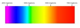 - En el campo de la espectroscopía en la medición de longitudes de onda. El orden de los colores en la luz, dispuestos de menor longitud de onda más larga, se llama el espectro visible de luz que va desde el violeta al rojo. Las longitudes de onda de la luz están marcadas en el espectro visible en angstroms.