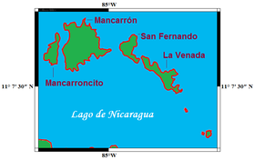Archipiélago de Solentiname. Conjunto de 36 islas situadas en el Lago Cocibolca,tiene 4 islas principales que son: Mancarroncito, Mancarrón, San Fernando y La Venada.