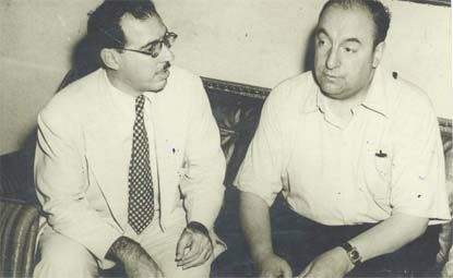 El periodista y escritor Ángel Augier junto a Pablo Neruda, La Habana, agosto de 1949.