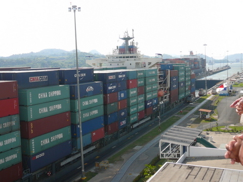 Barco atravezando el canal de Panamá
