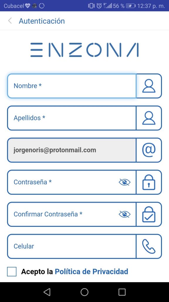 Datos personales del usuario EnZona