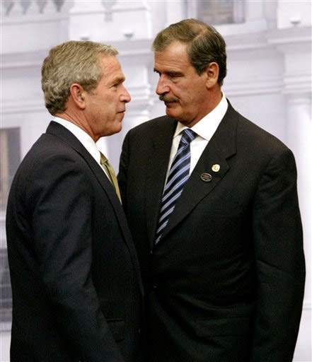 Los expresidentes de México y de los Estados Unidos, Vicente Fox y George W. Bush durante un encuentro bilateral