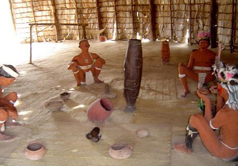 Representación del interior de un bohío que habitaban los aborígenes.