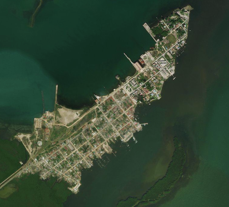 Isabela de Sagua vista desde el espacio exterior. A la derecha la desembocadura del río Sagua la Grande.