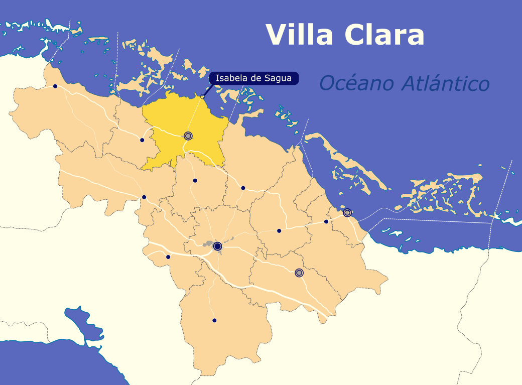 Isabela de Sagua. Mapa de localización del asentamiento en la provincia de Villa Clara.