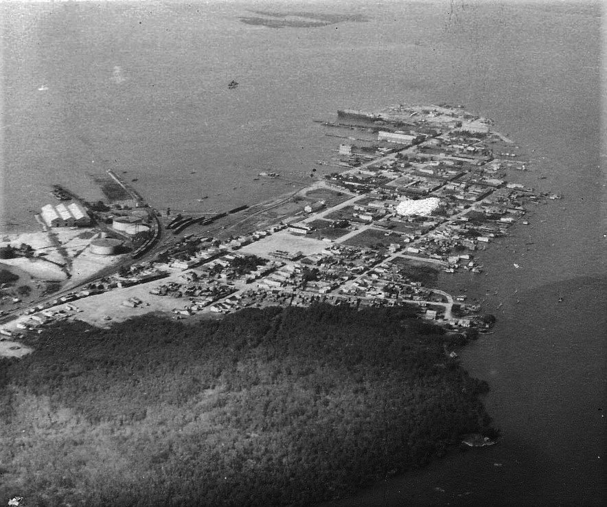 Isabela de Sagua. Vista aérea del poblado y puerto en el siglo XX
