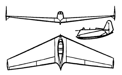 Tres vistas del planeador JAI P. P. Postyshev