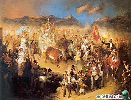 Obra La procesión del Rocio del pintor Manuel Rodríguez Guzmán.