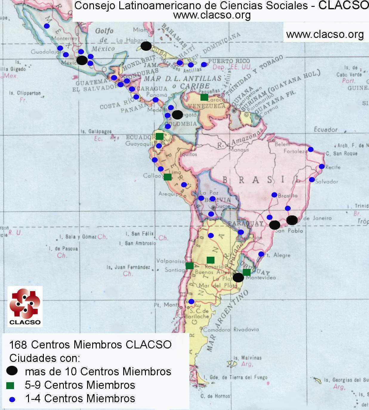 Archivo:Mapa de los centros miembros del CLACSO.jpg