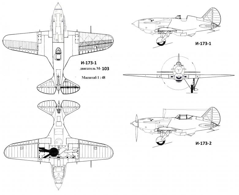 Tres vistas del Polikarpov I-173