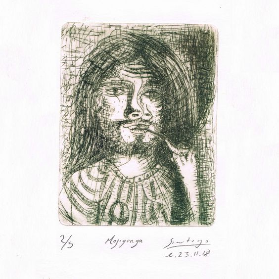 Santiago Angeles, Mojiganga, 2/5, 2018 Punta seca, Colección Particular