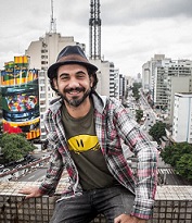 Eduardo Kobra, es un artista callejero de Brasil, nació en un barrio pobre en el sur de Sao Paulo. Comenzó su carrera a los 12 años, dibujando en las paredes escondido, como artista de grafiti. Eduardo Kobra es un pintor urbano de origen brasileño cuya obra se está extendiendo por todo el mundo. En la década de los noventa trabajó haciendo carteles, pintando escenarios de juguetes y creando imágenes decorativas para eventos en el que era el parque de atracciones más grande de Brasil. Era la primera vez que él, hijo de un tapicero y ama de casa, ganaba dinero con sus imágenes. El trabajo fue exitoso, tanto que le valió invitaciones para trabajar en otras empresas y con agencias de publicidad.