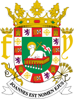 Escudo de Puerto Rico. Fue otorgado por la Corona Española en 1511 y es el escudo más viejo del Nuevo Mundo. Fue adoptado nuevamente por el gobierno del Estado Libre Asociado de Puerto Rico en 1976.