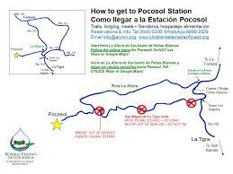 - Vía terrestre: Para visitar la Estación Biológica Pocosol se debe tomar la carretera Interamericana hacia el oeste con destino a la ciudad de San Ramón. Luego siga la carretera al norte a través de Ángeles, La Tigra hasta llegar a Pocosol. El tiempo de conducción desde San José es de aproximadamente unas 4 horas. Otra vía es a través de la carretera Interamericana hasta Naranjo y seguir el camino atravesando los pueblos de Zarcero, Ciudad Quesada La Tigra hasta Pocosol.