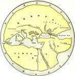 - Representó en él la Tierra como un disco circular, de unos 8000 kilómetros de diámetro, rodeado de océano con Grecia en el centro. La península ibérica era el fin del mundo conocido, las llamadas columnas de Hércules (el estrecho de Gibraltar).