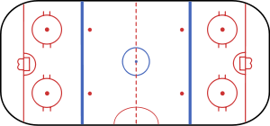Existen nueve puntos de faceoff, donde el árbitro principal pone en juego el puck durante un partido cuando este se ha detenido. Todas las áreas de faceoff son de color rojo a excepción del punto central, que es azul.