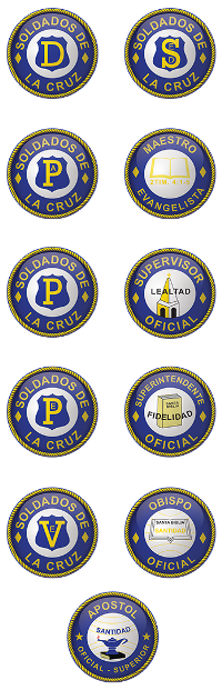 Los grados de distinción entre los miembros de la Iglesia Soldados de la Cruz de Cristo son:
