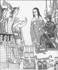 En uno de los enfrentamientos de Cortés, en el pueblo de Centla en Tabasco, luego de obtener la victoria, recibió un grupo de 20 jóvenes mujeres como agasajo, entre ellas estaba la joven Malitzin o Malinche quien sería una de las primeras intérpretes de América.