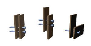 Existen dos modos mediante los que se pueden unir los grupos CH3 a los carbonos entre los que existe el doble enlace o bien del mismo lado del plano del doble enlace o bien por lados opuestos. Ahora bien, una característica muy importante de los dobles enlaces es su rigidez o falta de rotación libre. Así, la estructura una no se puede convertir en la otra por giro de un átomo de carbono 180 grados con respecto al otro. Se trata de una situación análoga a la de los cartones clavados que se muestran en la siguiente figura. Las estructuras con dos clavos no son interconvertibles por rotación, mientras que los cartones con un solo clavo pueden girar uno con respecto al otro.