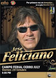 José Feliciano cantante de boleros y baladas, destacado intérprete de la guitarra española. Feliciano ha tocado con las mejores orquestas sinfónicas, incluyendo la Sinfónica de Londres, la Filarmónica de Los Ángeles, la Filarmónica de Puerto Rico y la famosa Filarmónica de Viena. .