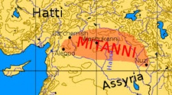 Mitani. Primer reino en surgir en el Próximo Oriente y que fue el principal adversario de la XVIII Dinastía egipcia por el control de Siria, estaba compuesto mayoritariamente por población de origen hurrita, siendo conocido por sus contemporáneos como Naharina en las fuentes egipcias, Hanigalbat en las asirias y el País de los Hurritas en Hatti. Mitanni fue, en esencia, un estado feudal dirigido por una nobleza guerrera cuya capital se encontraba en la ciudad de Washukani, de la cual se desconoce su ubicación.