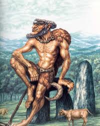 - Basajaun: Es la versión vasca del hombre salvaje del Bosque, aunque tiene una gran importancia dentro del imaginario pagano vasco, en varios aspectos diferentes, ya sea como protector de los rebaños y pastores, o haciendo funciones de fauno, o como dios al que se le roban los secretos tecnológicos (como la Sierra, la Agricultura, etc., en la parte aragonesa del pirineo se conoce en algunos lugares como Basarajaun, y en la parte catalana también se recogen mitos similares, como recoge Violant i Simorra.