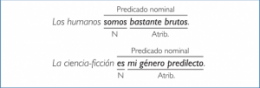 Si bien el núcleo de la oración sigue siendo el verbo, el núcleo semántico o de significado es un nombre, pues los verbos de estos predicados nominativos aparecen vacíos de significación. Las que tienen predicado con verbos diferentes a los mencionados, se denominan oraciones predicativas Ejemplo de oración con predicado nominal: La casa es cómoda. Las ventanas parecen gigantescas, pero seguras.
