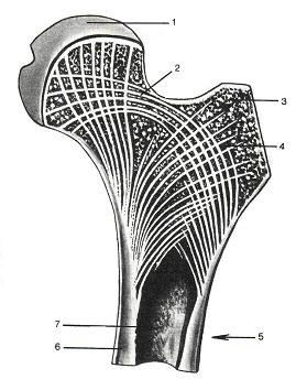 Fig. 2 Estructura del fémur en un corte (Según Kiss-Szentágothai)
