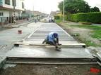 Lo primero debe ser la comprobación de que la subrasante reúna las condiciones de resistencia mínima y que presente los perfiles con las pendientes necesarias para los drenajes, además de hallarse en la cota o altura pedida como base o fondo del pavimento según los requerimientos del proyecto. En segundo lugar se comprueba si todas las instalaciones y canalizaciones que van bajo el pavimente están correctas. Una vez realizadas las comprobaciones, se colocan las gualderas y guías que limitarán los paños de hormigonado hasta las juntas de construcción y expansión. Antes de verter el hormigón, se deben humedecer bien la subrasante y las gualderas. El hormigonado se hará en cuadros alternos, a fin de ir dejando juntas de construcción que puedan ser usadas como de expansión; esos cuadros deben ser de 4.00 x 4.00 m.