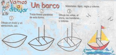Lee el texto: Vamos a dibujar un barco Materiales: lápiz, regla y colores. Preparación