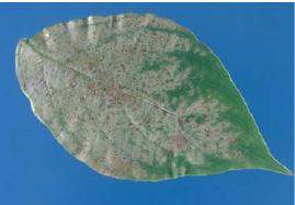 Hoja de aguacate, afectada por el Thrips de cinta roja S. rubrocinctus