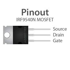 MOSFET IRF9540. Es un transistor de tecnología MOS-FET (Metal–Oxide–Semiconductor – Field Effect Transistor) de Potencia y canal P.