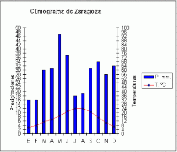 El climograma es un gráfico de doble entrada en el que se presentan resumidos los valores de precipitación, temperatura y clima recogidos en una estación meteorológica. Se presentan en cada mes del año la precipitación total caída durante el mes y la temperatura media mensual (media de la temperatura media diaria de cada día del mes, y esta a su vez media de la máxima y la mínima en 24 horas)