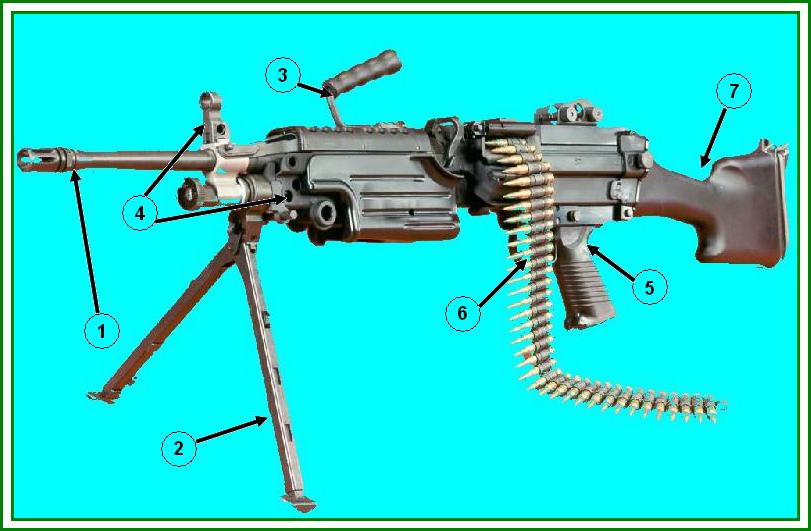 Revisión del 11:15 4 may 2011 de Miguel03015 (discusión | contribuciones) (La M249 es accionada por los gases del disparo y refrigerada por aire. Posee un cañón de cambio rápido, que permite al combatiente que la transporta reemplazarlo en poco tiempo cuando se sobrecalienta o bloquea. Tiene un bípode plegable acoplado cerca)